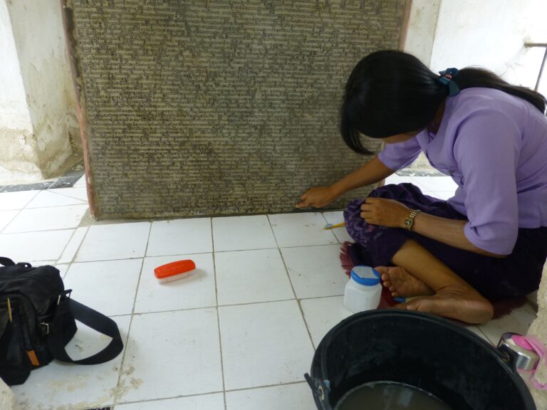 Dept. of Archaeology staff removing cement splashes