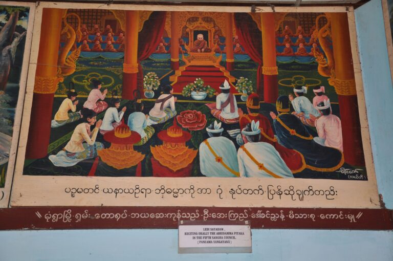 An artists rendition of the Fifth Council depicting Ledi Sayadaw reciting the Abhidhamma (Kathāvatthu)