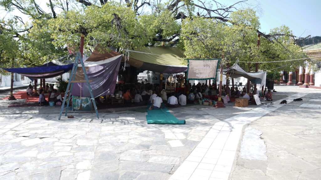 While the Kuthodaw Pagoda is of great historical importance, it is also a sacred space that is still used as a place of devotion for Myanmar’s Buddhist majority. Buddhists come to the site for merit making, meditation, listening to the sermons of monks, etc. It is also one of the larger areas in Mandalay open to the general public and during public holidays the site is filled with families having picnics.